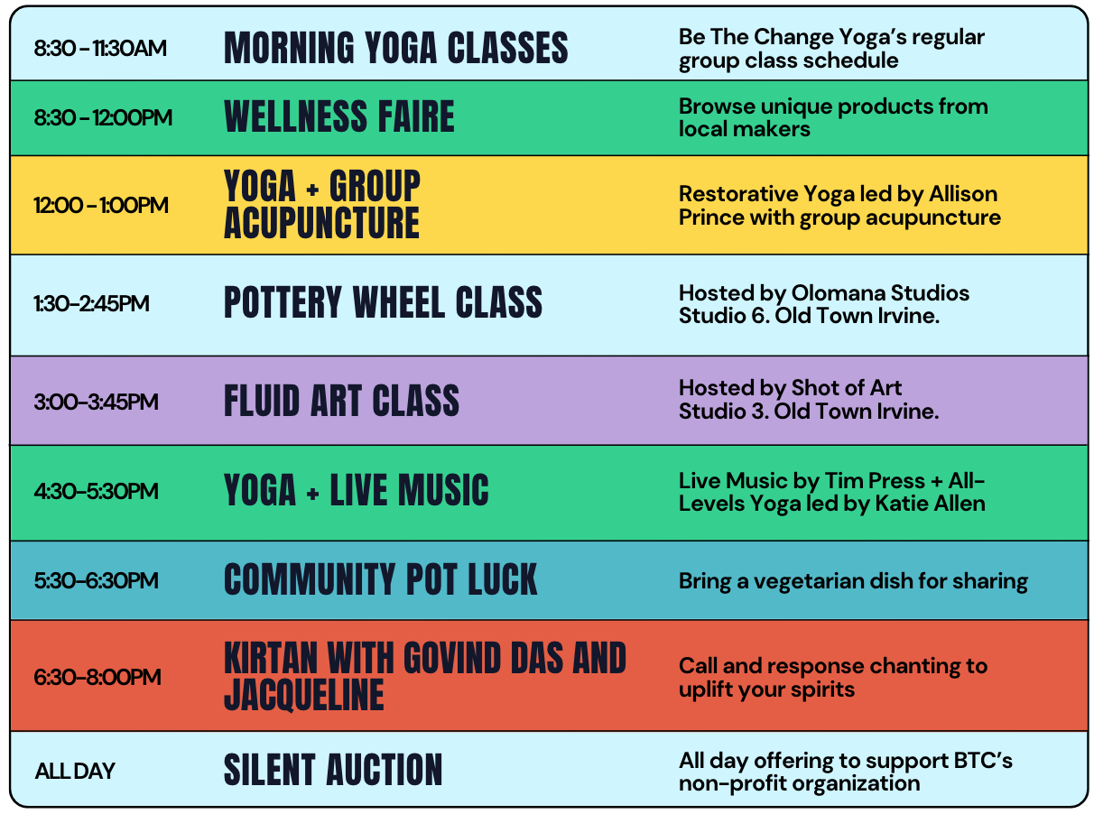 Be The Change Yoga 14988 Sand Canyon Ave, Studio 5, Irvine, CA, United StatesEvent OverviewCelebrate, Connect, and Create Joy Together! Mark your calendars! Be The Change Yoga is hosting an all-day Community Celebration on Saturday, November 8th — a day full of movement, […]